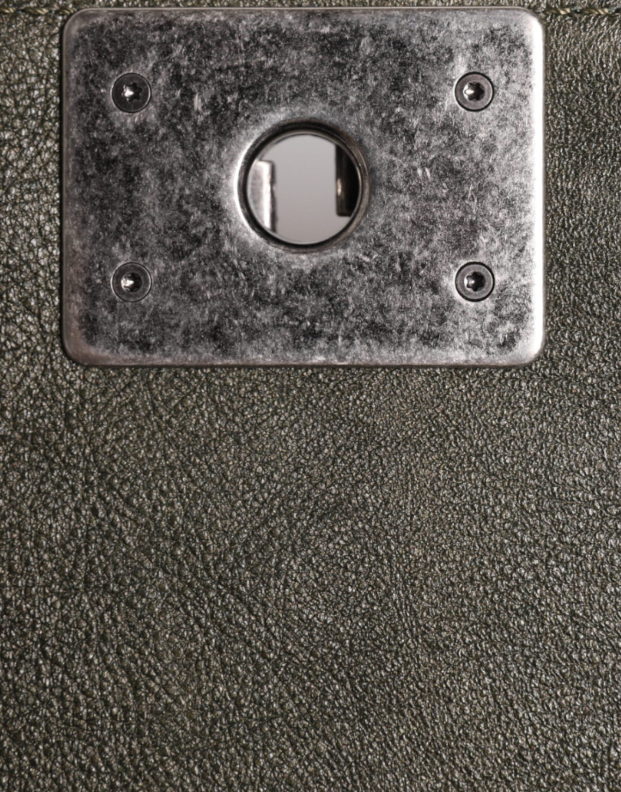 Chanel Dark Green Leather Shoulder Bag Gray Metal Purse Bag